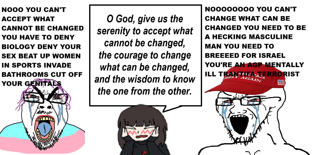 >>42988089three years on estrogen and people think i'm trans now :(( they keep referring to me as "that trans girl in class" i just want to be a feminine estrogenated man