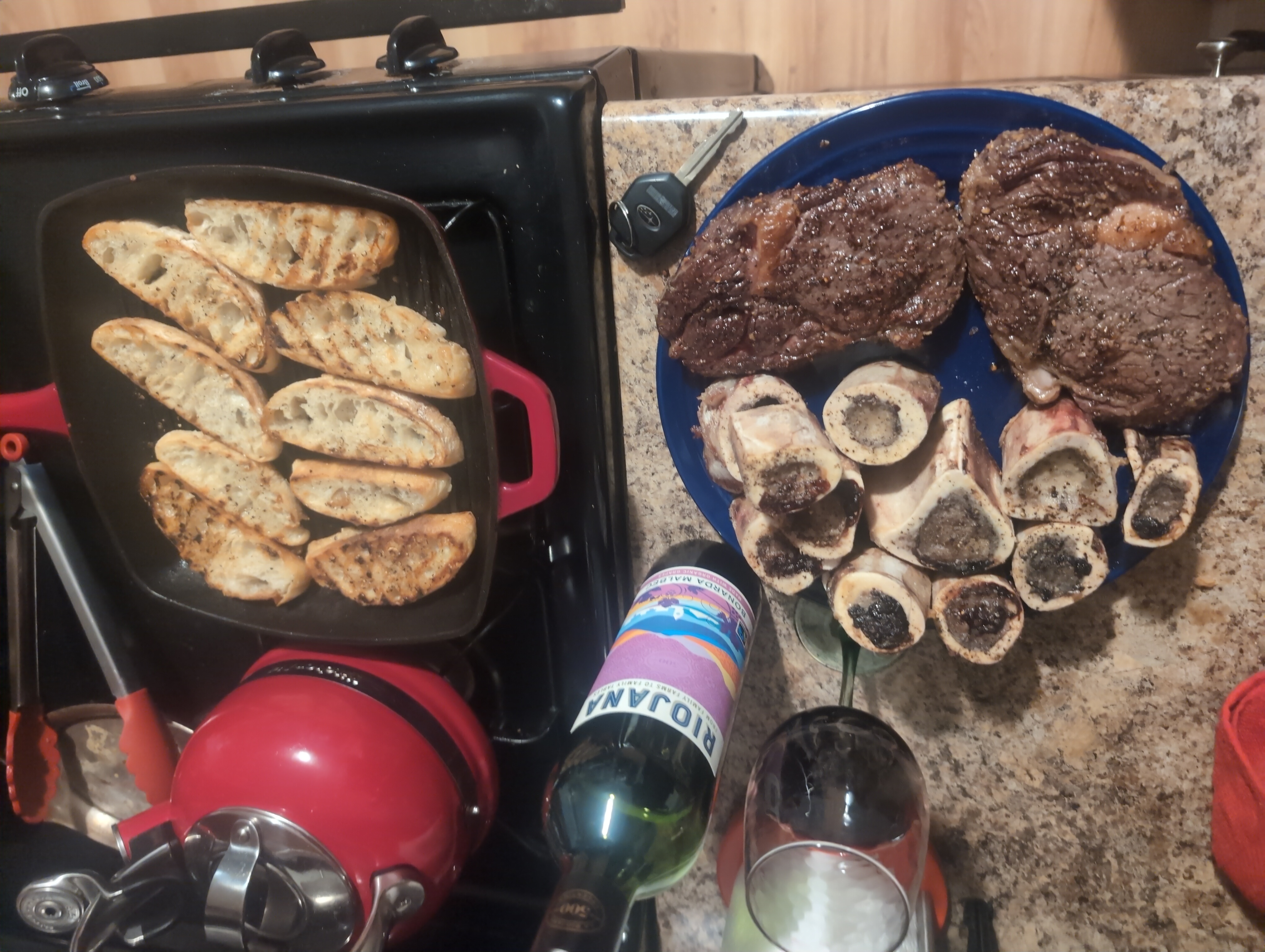 >>43023002Bison steaks, bone marrow, roasted garlic ciabatta, and a bonarda malbec. And for dessert the rest of the wine and dark chocolate covered blueberries