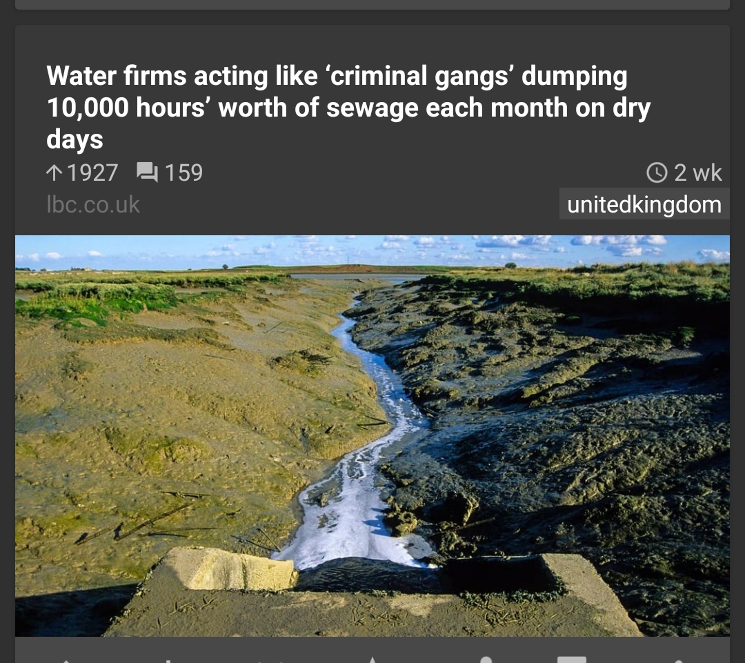 >>43047136Also here is the headline for raw sewage destroying the environment and contaminating drinking water that all 70 million of us rely on...A few tuts, a few jokes, what can you do. Btw TRANS PEOPLE WANT TO EXIST IN SOCIETY AND IM SOOOO BLOODY ANGRY