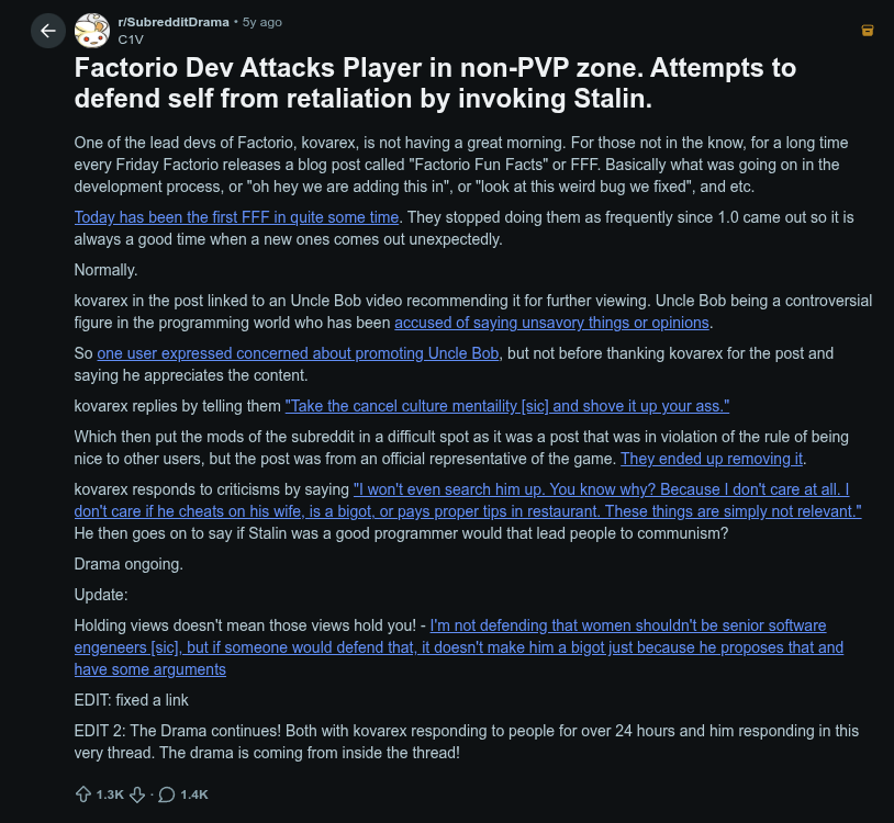 >Death Stranding as well as Kojima games>Pokemon >Roguelikes and games heavily encouraging speedrunning>Ultrakill>Hearts of Iron 4 as well as Paradox games>Boomer shooters, though especially The Citadel and Beyond Citadel>Total Warhammer 1-3 as well as Total War games>Dark Souls and Soulslikes>Marathon>ARC Raiders>Tarkov>Oldschool Runescape>World of Warcraft>Final Fantasy XIV, the MMORPG, though not FFXI, which is just old 50-70 year olds with jobs and mortgages so they largely pre-date modern trans culture>Train Simulator / Euro Truck Simulator / Other simulators>Sekai Project and rhythm games though excluding Dance Rush Stardom which requires physical fitness>Guilty Gear Strive, especially Bridget mains>Stardew Valley, to the extent that a "Stardew Valley Bluey tranny" is a legitimate type of trans person much in the same way a HoI4 trans person is>Terraria>MOBAs, though the most tranny MOBA is Deadlock>Team Fortress 2>Dead by Daylight>Limbus Company>Warframe>Fallout series, though especially New Vegas>Helldivers 2>Visual novels that deal with trans themes, such as Moonshine / Tsuki no Terasu>Mecha games, but especially Battletech (see: the reddit trans drama on r/battletech a few years ago)>Autism pandering subgenre, where people feel large senses of achievement and get worked up over optimising shit that doesn't matter because it feeds a sense of control in their life, this includes factory games like Factorio