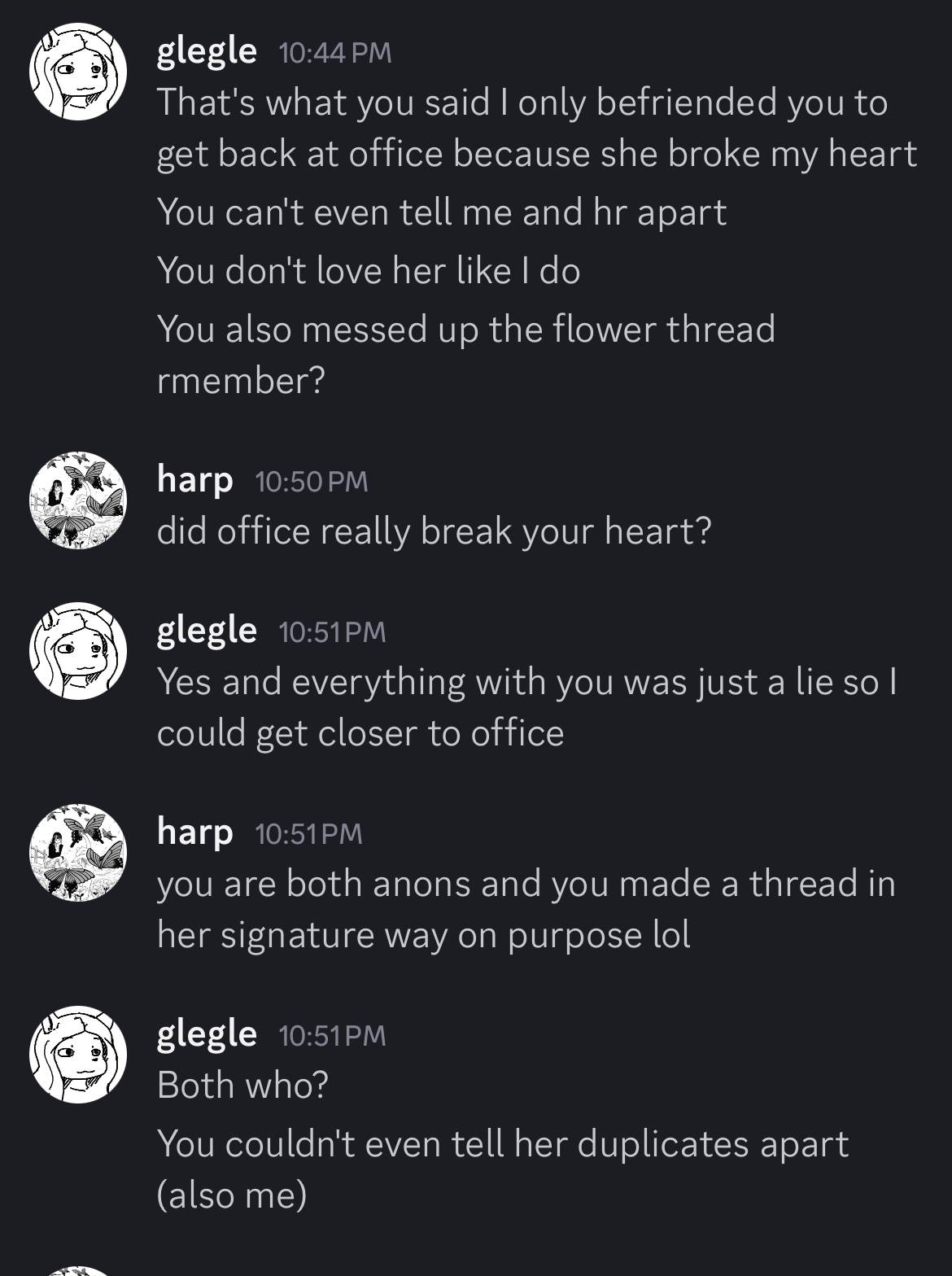 you did say i deserved it and apologized for it. have said a ton of other nasty things to me about me manipulating me and exploiting me. i begged to be left alone by you then you told me you want to speak to me just stop interacting with me and you made the fake transbian thread to bait me the amount of cope and lying in this post is crazy and you told me i deserved everything that has ever happened to me m. im just living stop pulling ME back and playing victim as you call yourself evil and coax me into assuring you aren’t. so well, you aren’t but you still wronged me either way leave me alone like i’ve said so much. bye