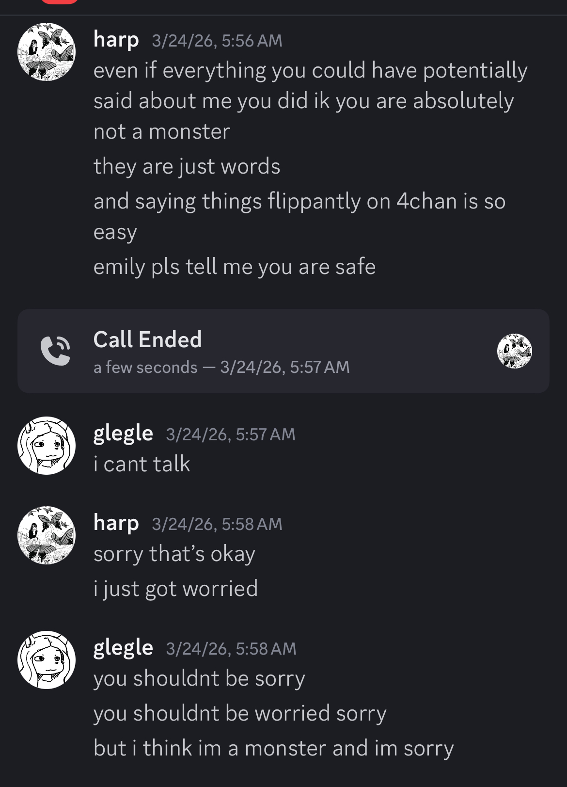 I told her I’m worried she’ll kill herself and read her some more and then she said, “maybe she should.” F O L K S