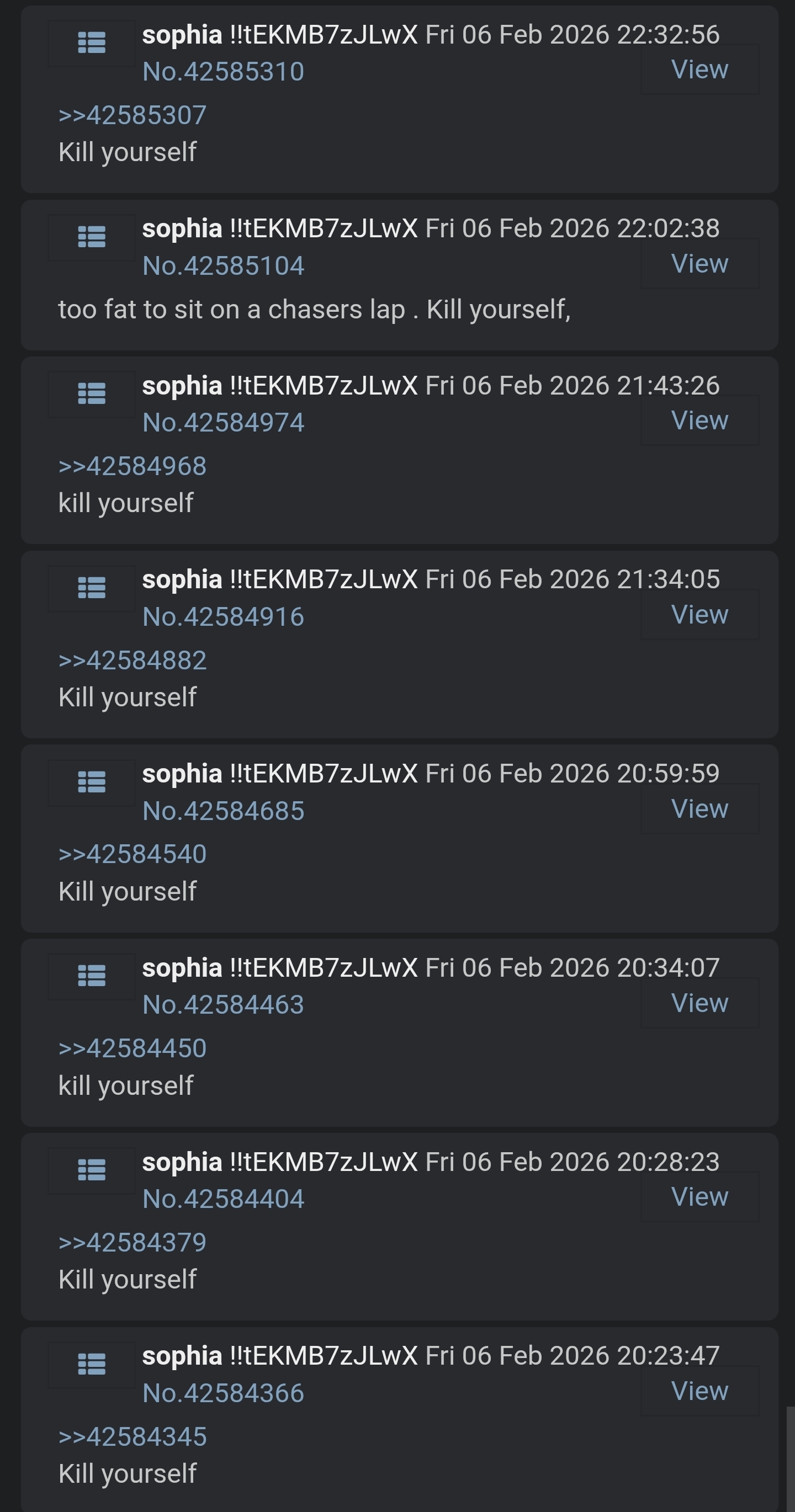 >>43066457i'm very friendly irl so here i like being mean instead.also a tranny broke my heart so now they all have to pay for it