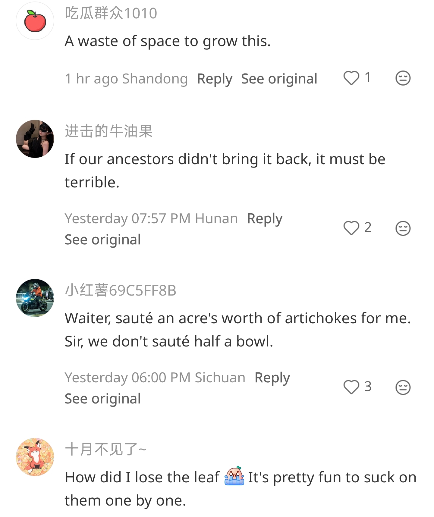 >>43066505have you tried durian? I've only eaten things that are durian flavoured and never the actual fruit. I could buy it frozen but it's extremely expensive because it's hard to import... i wonder if it's that deliciousbut for sure right if you don't have the context of how something is actually eaten or even just how delicious it is it's hard to understand why people go to so much effort. i like to eat boiled and grilled artichokes when they're in season and preserved artichokes in oil with antipasto in winter
