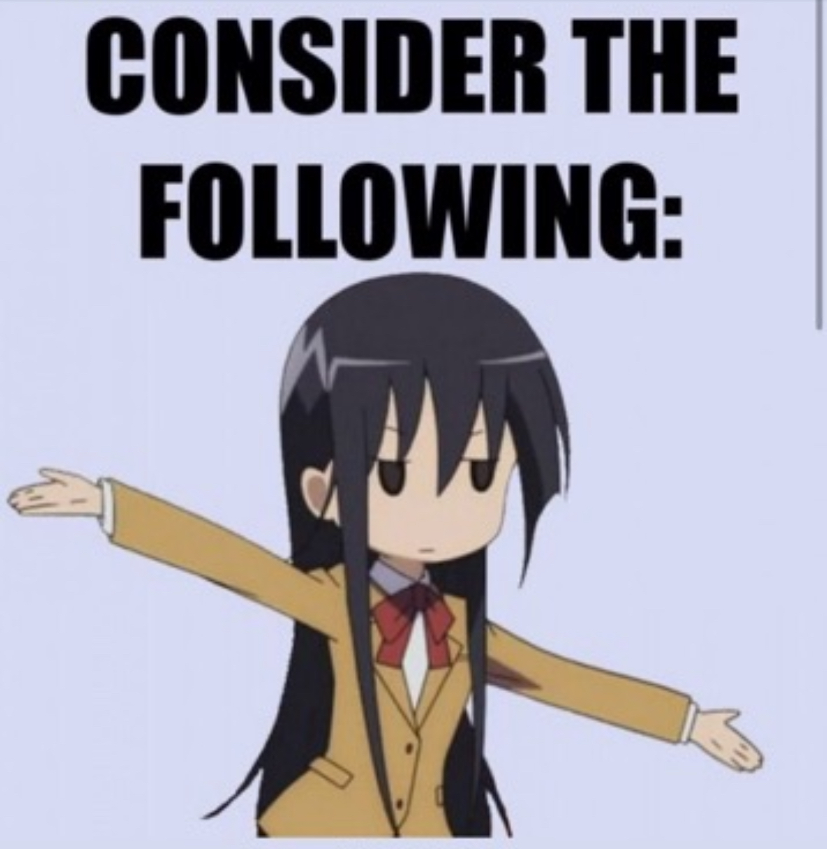 In UBERNERD voice:Okay dude. Just say you have no culture, alright? I’ll put you on to some peak anime. My favorites are my little sister can’t be this cute, that time my wife was reincarnated as an elementary schooler, and my little pony: friendship is magic. What’s that? No, loser, they’re called the MANE 6. And rarity is the WHITE one, not the purple one. What a heathen.