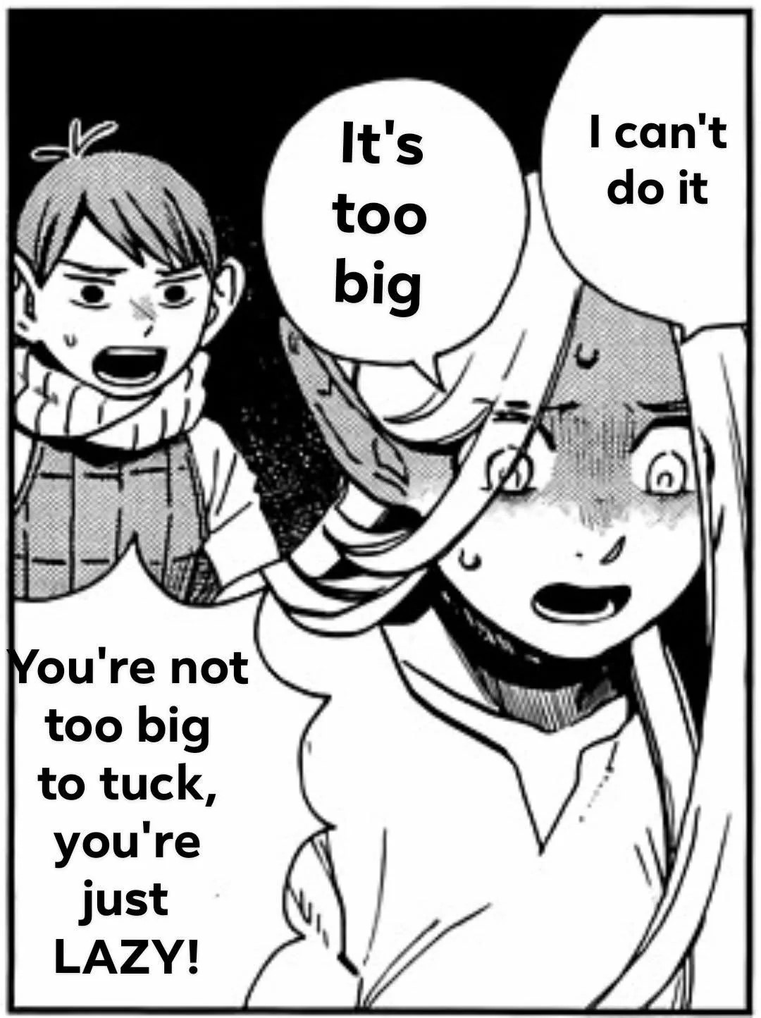 I might be too late, but picrel prompt. Just add "Silly Nona" before the you're not too big part.