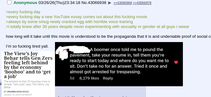>>43069815The point is that your experience growing up in the 2010s is not the same as other people's experience growing up with "she had a penis" being a punchline to a joke or a justification for homicide
