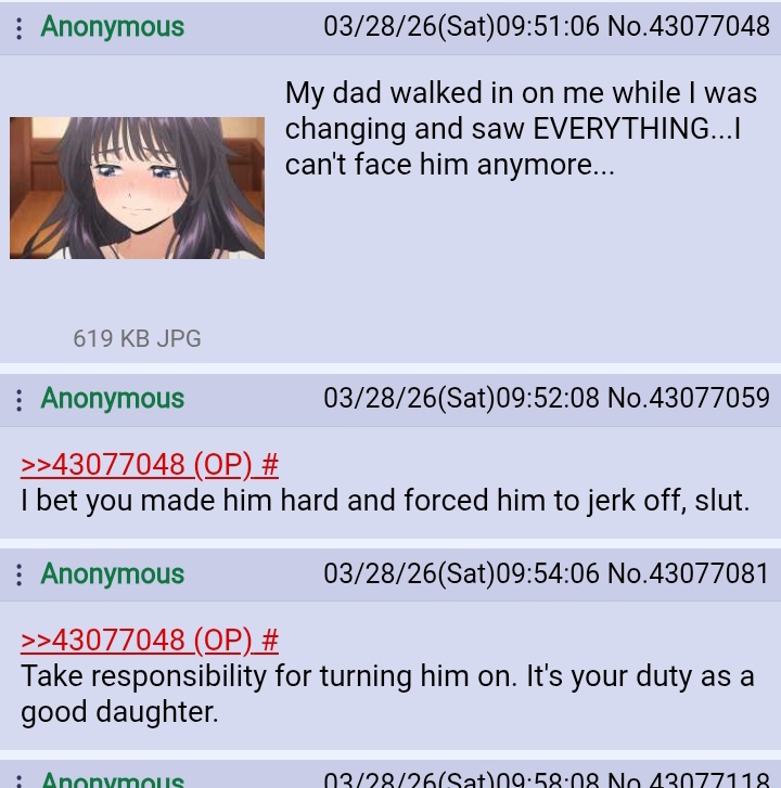>>43079182No sane person would want to fuck their dad>>43079200( • ᴖ • 。)