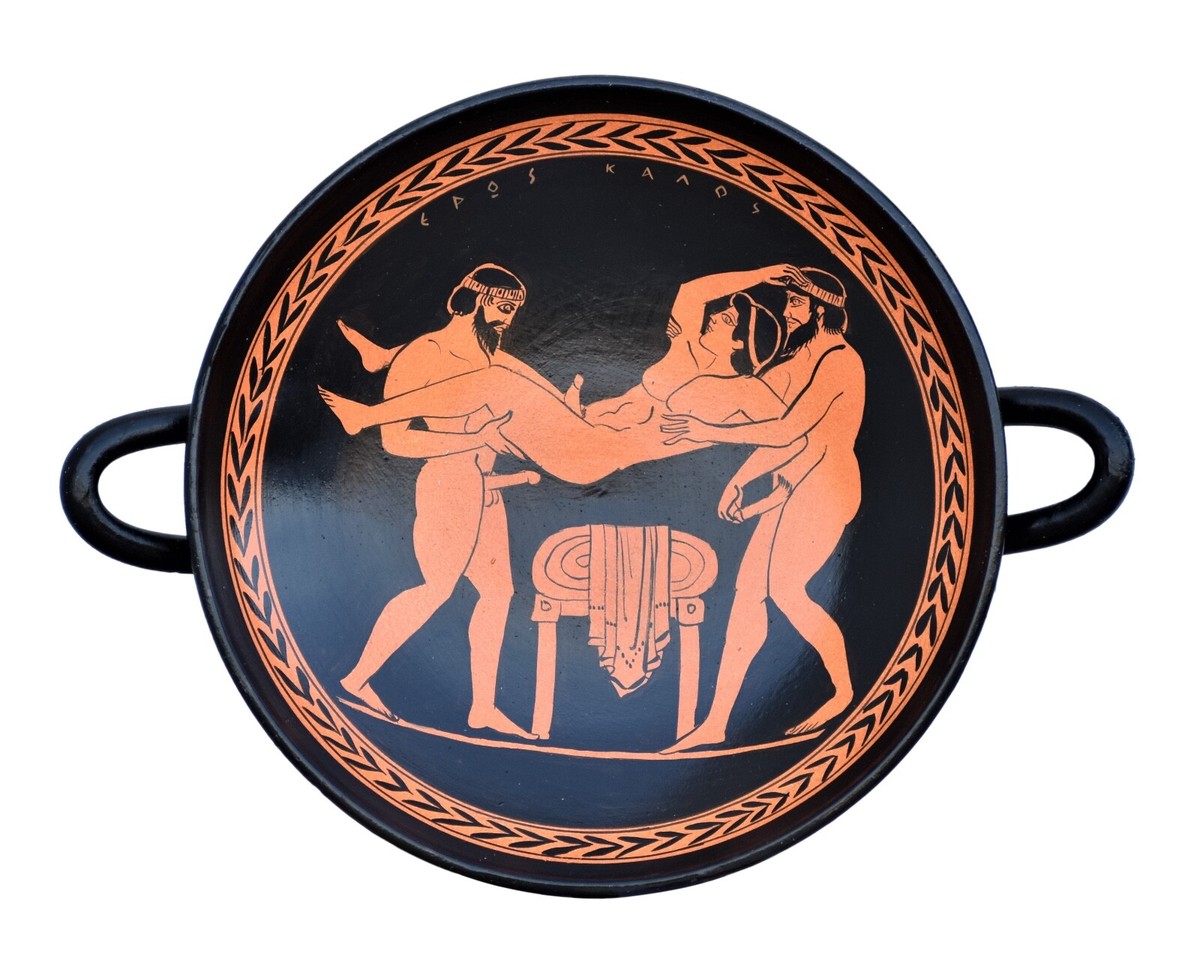 >>43081628Kek username? Are you fr? It’s a reproduction of an Ancient Greek kylix. There are a lot of them with homoerotic scenes like this. No idea who the artist on this one was, or if it’s even actually a replica of an ancient piece and not just someone working in this style at a later date.If you really wanna know more this style of pottery is usually called Red-Figure Pottery. It’s achieved by using colored slip over a solid clay base; the slip can be painted on or incised into to create strong contrasting graphic shapes and lines. There’s also Black-Figure pottery, which is essentially the same process but with the colors reversed.It’s a very well documented tradition. You could get a much more detailed history and explanation of the process if you feel like digging into it. There are plenty of other gay sex scenes you can goon to as well, just don’t try it at a museum xD
