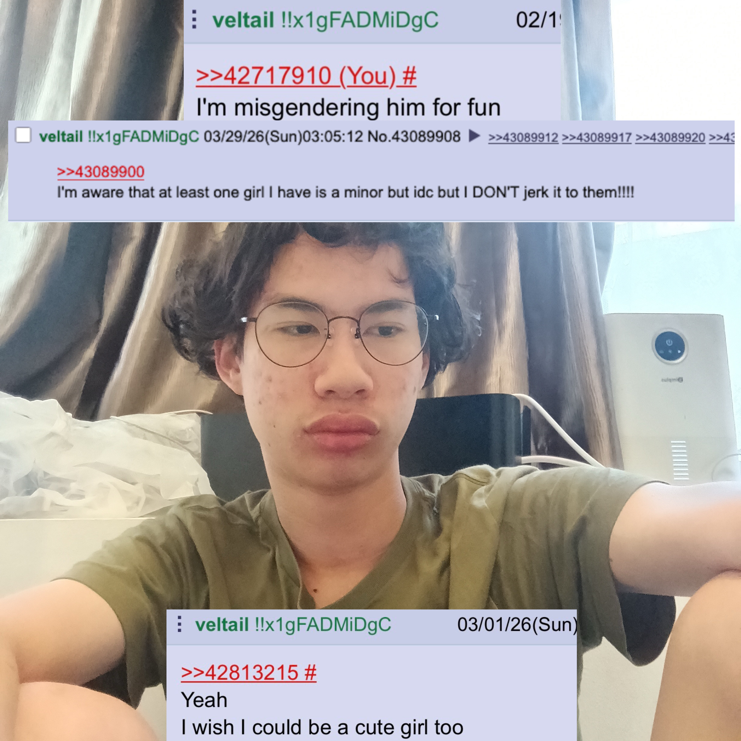 >>43089502>posted pictures of yourself on 4chan to begin with you'll do it again
