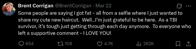 >>43104650says he suffered from a traumatic brain injury but is it just another excuse fat people make for sympathy?