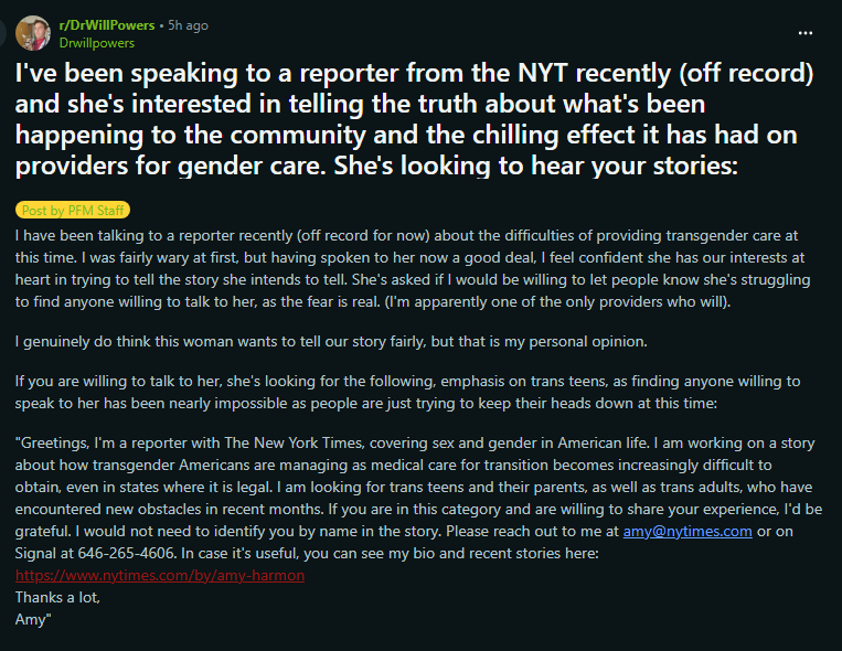 Wow, turns out this journalist wasnt actually being kind or caring, but wanted to cause harm, who knew