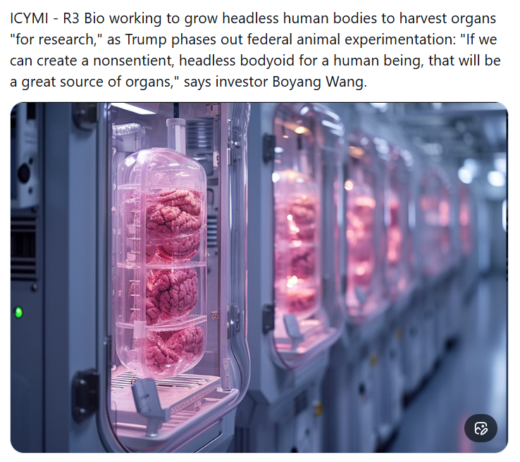 they will just pay a bunch of somalis to sell their organs and call it "artificially grown bodyoid organs"