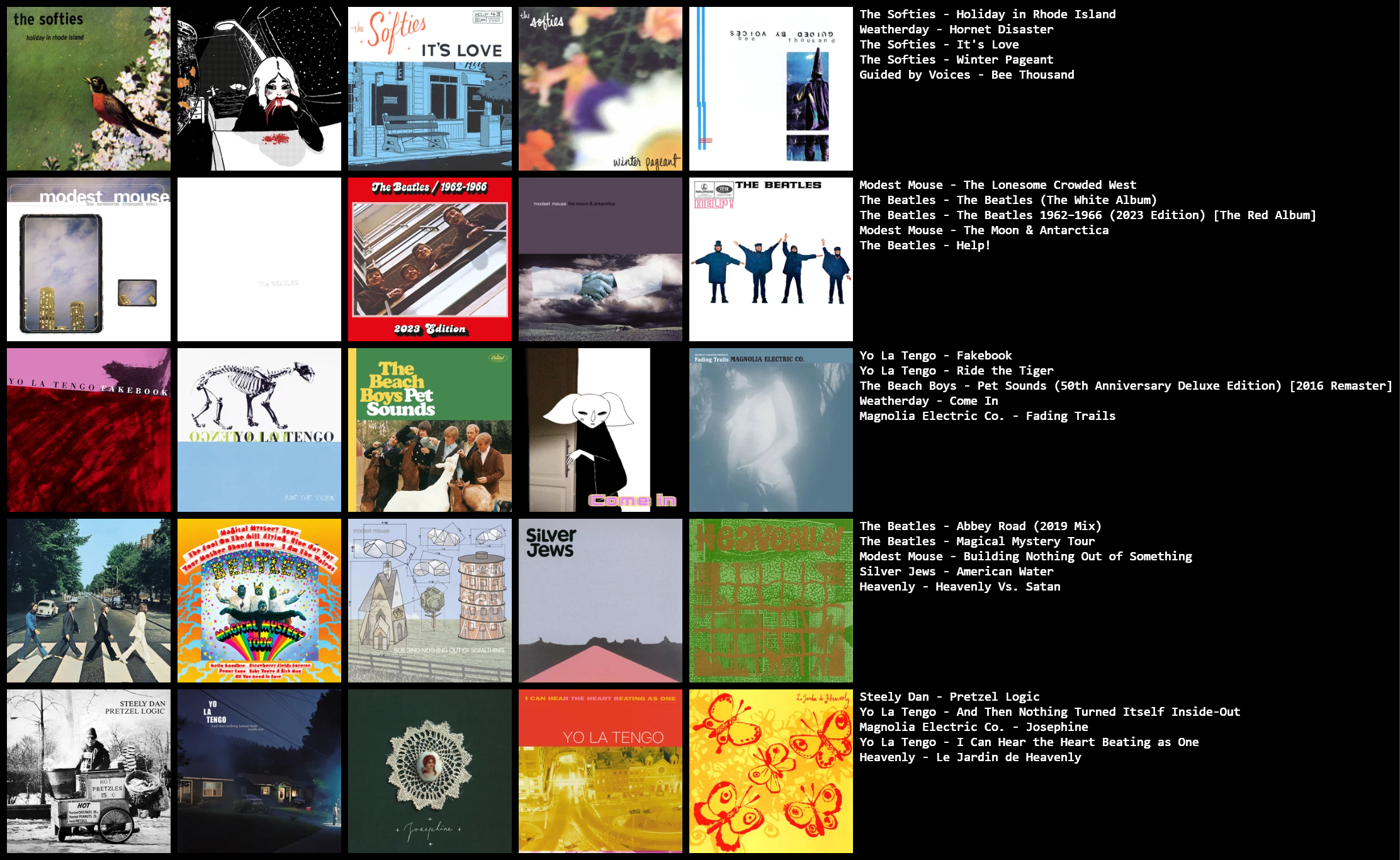 >>43151273I LOVE THIS!!! i adore nmh and tally hall, csh, and beatles are cool tooi suggest you try dusk at cubist castle by the olivia tremor control thwy are similar to the beatles