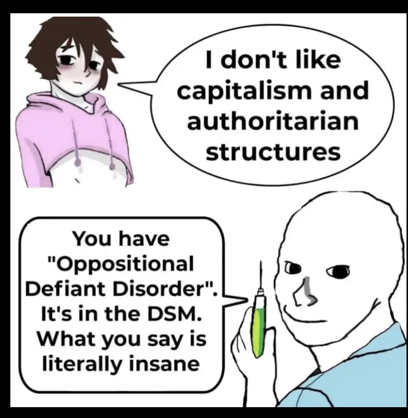 >>43167675Repeat this mantra like Nixon repeated his mantra. The doctor is the enemy. The doctor is the enemy. The establishment is the enemy. The nurses are the enemy. Nurses are the enemy. Write that on the blackboard 100 times and never forget it.