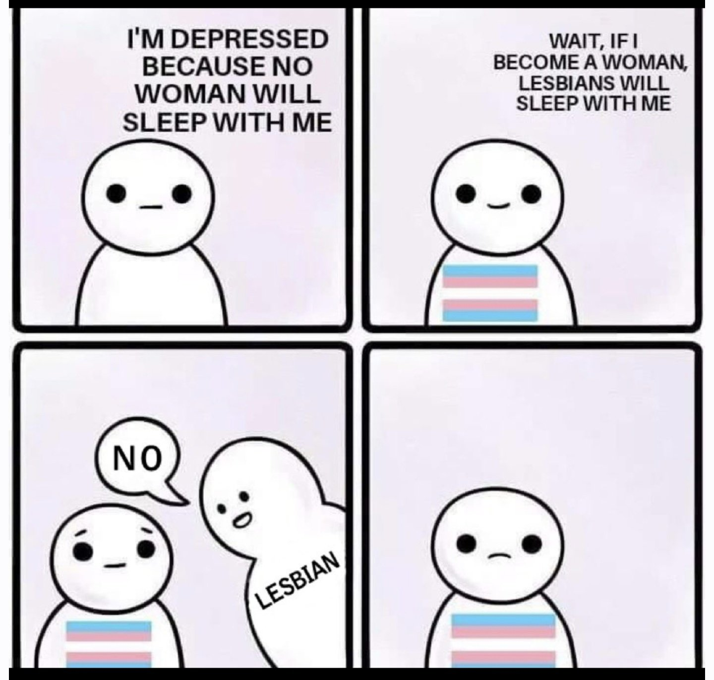 >>43184958Do TERFs really think like this? Like do they think trannies think the dating pool of women who date trannies is larger than the dating pool of women who date men?