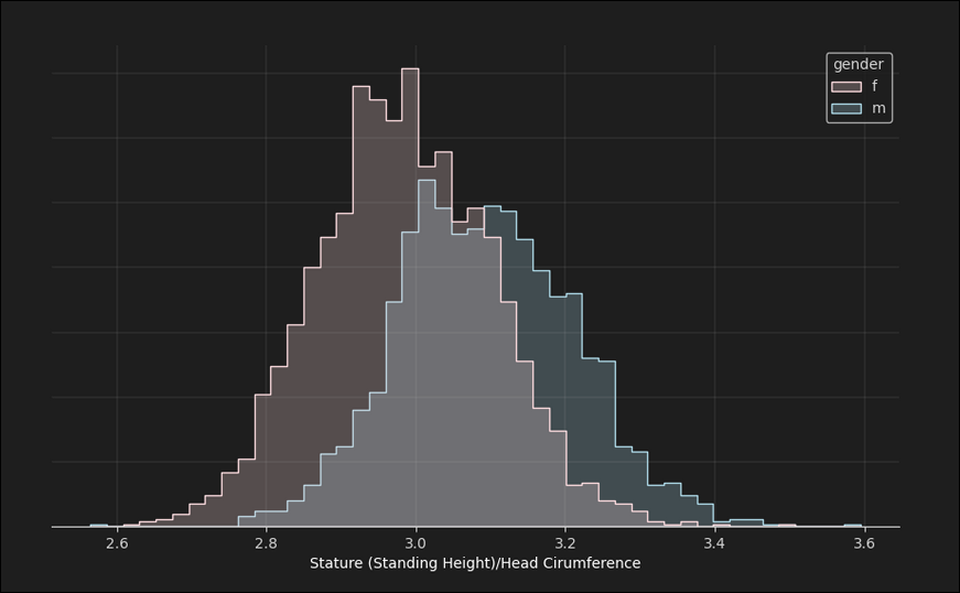 >>43195172This is why I prefer the scatter chart. It makes it clearer how the distribution works better because the "ideal ratio" changes based on height. If you're short, a large head is fine. If you're tall, you really don't want a large head.