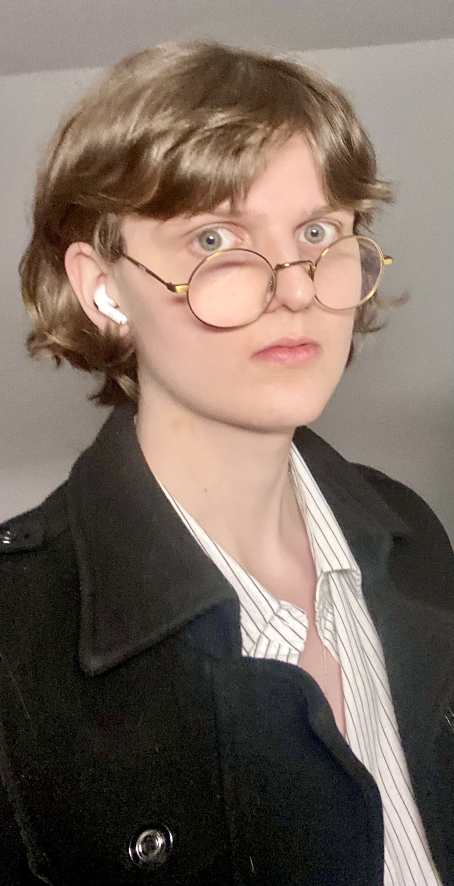 >>43271515>love ur hair! thank you!!>hate ur glasses. yeah its my lazy pair>try to overline ur lips, no pass yet but u can do it. okay ill look into that, thanks>>43271523to me you looks cis. especially your hip to shoulder ratio is enviable. did u do any workouts for that or is it genetics?