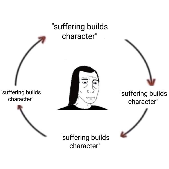 I see so many posts seething and talking about how repressing gender dysphoria is like, the worst fucking thing in the entire world.