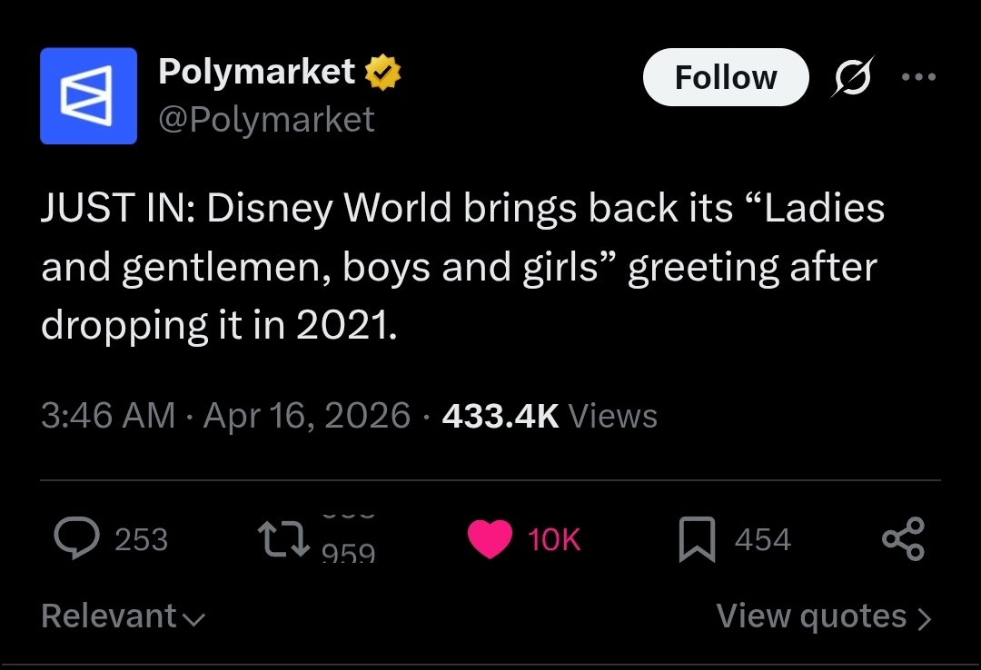 >>43267429unironically things like disney world dropping "ladies and gentlemen, boys and girls" killed woke because the only people who wanted that were obviously retarded bpd theyfabs