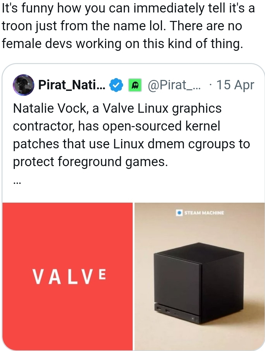 because trannies are smarter than cis people and are thusly much less likely to conform to social standards, to which, though it is improper to say it in polite company, the vast majority of people fold to faster than play-doh. you should be happy, most mediocre male gamedevs are incompetent
