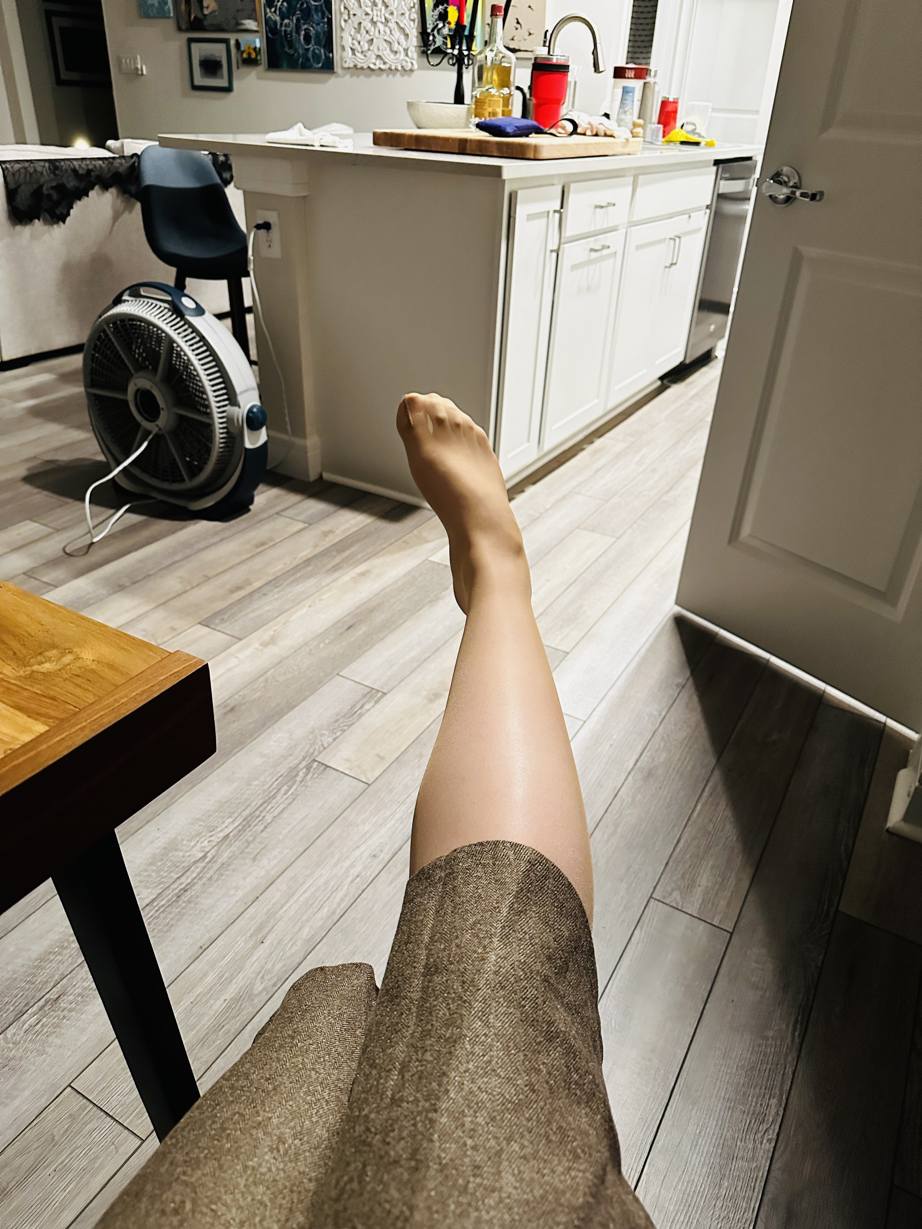 >my stomach fat being squeezed by my pants:(>my thigh fat being squeezed by my shorts :)
