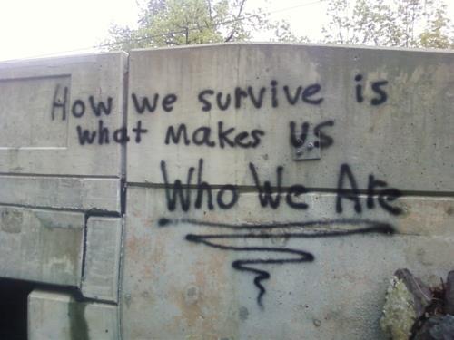 >>43290234>>43290265(2/2) and it ended up being really enjoyable to me when i got older and got a smartphone and looked through older 2015 tumblr blogs. i actually mostly just saw the types of pics from that era of tumblr blogs like the ones people would take of themselves wearing black clothes and adidas or bottles of fiji water or blurry pics of the sky etc. like 2015 "grunge" or "soft ghetto" (i know its a stupid term but thats what they used) blogs. i would see those types of pics on these 2015 "vibe twitter" accounts that always posted fake deep quotes and stuff and used those pics from tumblr as their profile pics. so when i got older and actually used tumblr it was really fun to go through blogs from that era and soak in the nostalgia because that stuff was part of the positive things that helped me get through that time in my life. i was just looking for a pic from one of those blogs and found a really good one with a quote that actually is relevant to what I'm talking about, it says "how we survive is what makes us who we are". >but im gonna save your id if dont mind and maybe add you later ok? im pretty aviodant sorry sure! and that's ok i understand