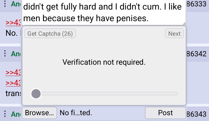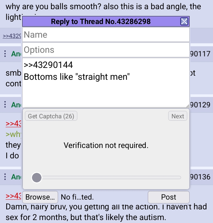 >>43290107it really isn't any of your business and I never asked to know about your disgusting sex life