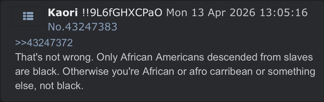 >>43288560I just reiterated on the things you post. I never mentioned black people? A little slip up?>>43288547lole