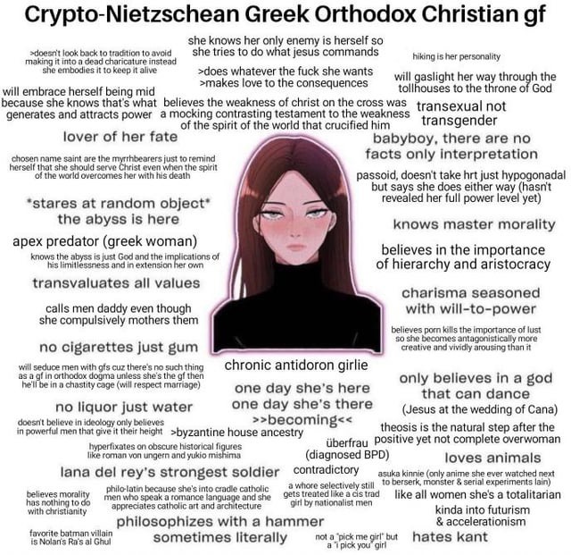 >>43286421>Don’t any of you feel intense guilt and shame for being a tranner?I feel great joy and pride>OP picrel>Uberfrau (diagnosed BPD)lmfao...I feel like I'm literally that exact meme but the opposite, I'm the Humanist Syncretic Catholic Christo-Heathen gfnothing but smiles here