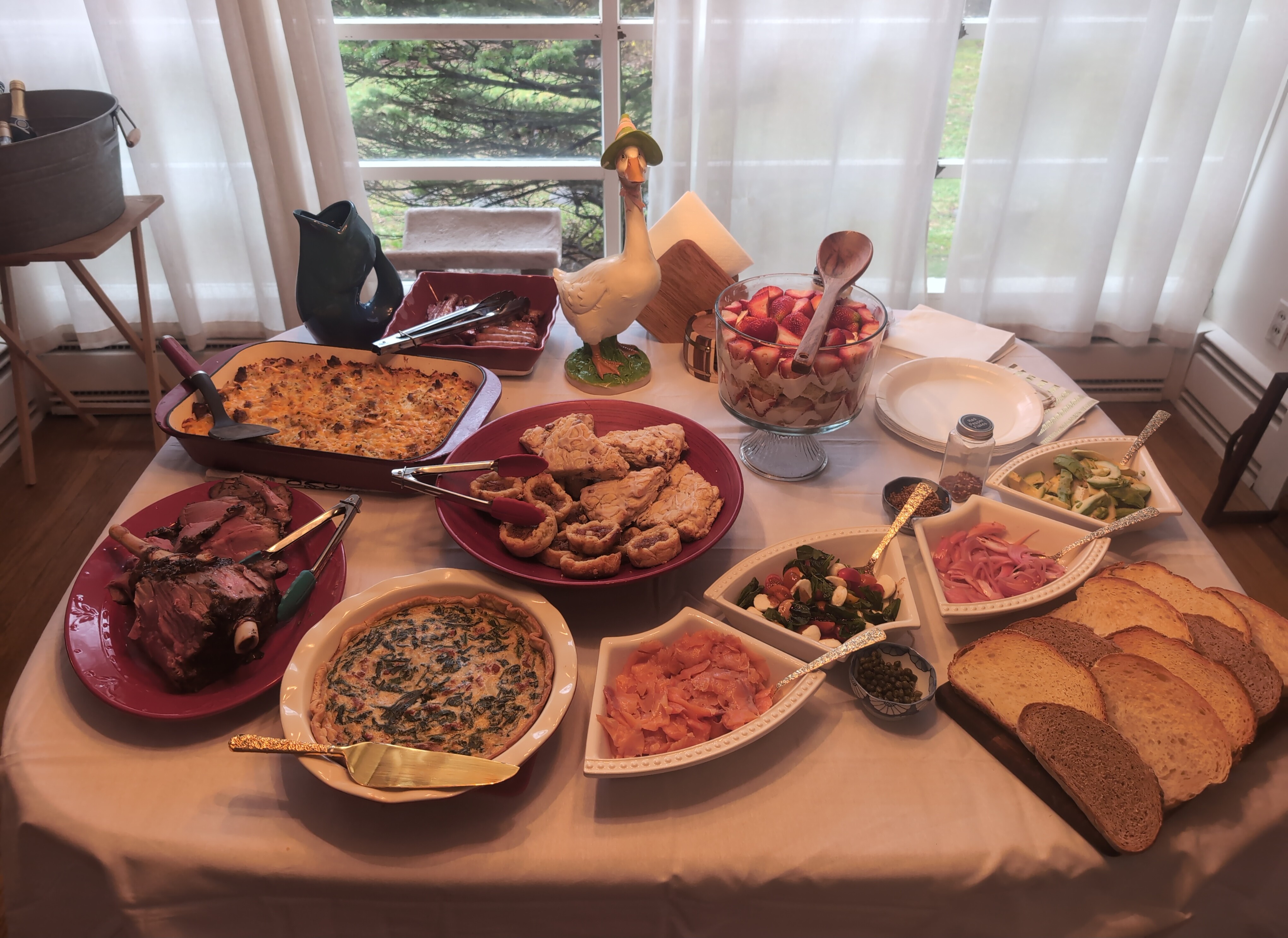 >>43305546Best I got is a tuscan spinach quiche or bruschetta avocado toast. Feels weird to have a salad at a brunch. Also pigs trough? Really man, damn. Presentation is not my skillset but come on now. I had a pretty punch