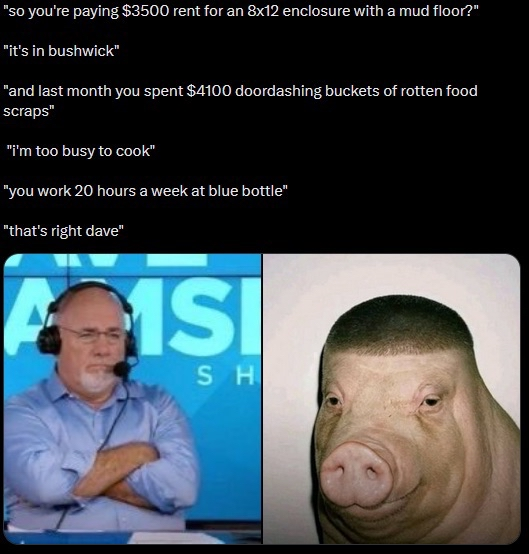 i get the whole economy thing. i understand macro and microeconomics. basic and advanced finance. financial dealings. analysis. accounting. predictions. financial planning. markets. so i understand that prices of things have gone up. and i understand that you have to pay more for things. but even though the price of eggs has doubled i can still get a dozen for 4$. and you dont order 6, 12 french fries with dinner. you can still get 20lbs of potatoes for 10$. so why do you get 2, 3, 4 eggs if youre lucky at a diner? why do you get a cup or two worth of hashbrowns? i want a dozen eggs, i want 2 lbs of hashbrowns, i want bottomless coffee, and i dont think i should have to pay more than 20$. even if i somehow drank 5$ worth of grinds even if i somehow found time to drink 6-8 pots of coffee during an average sized meal we're still talking about a 200% mark up