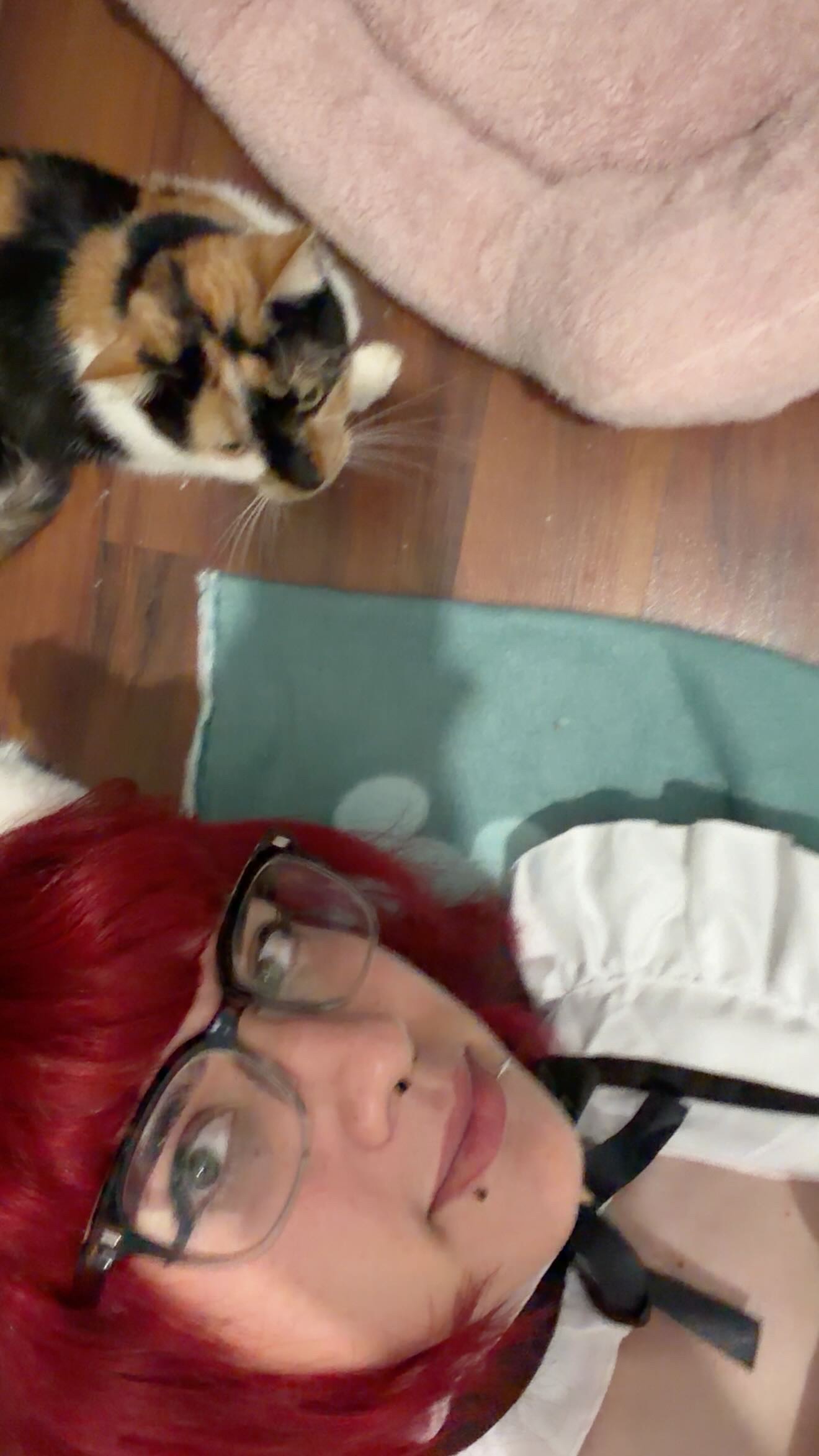 How do neither of you know how to take a selfie is that genuinely the only angle you can take a photo on why is it on the ground besides a bed