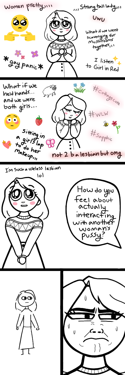 Has anyone got that comic lambasting the "uwu such a lesbian, omg me when girl" reddit archetype and asking her to actually interact with a vagina? I have someone to emotionally harm.