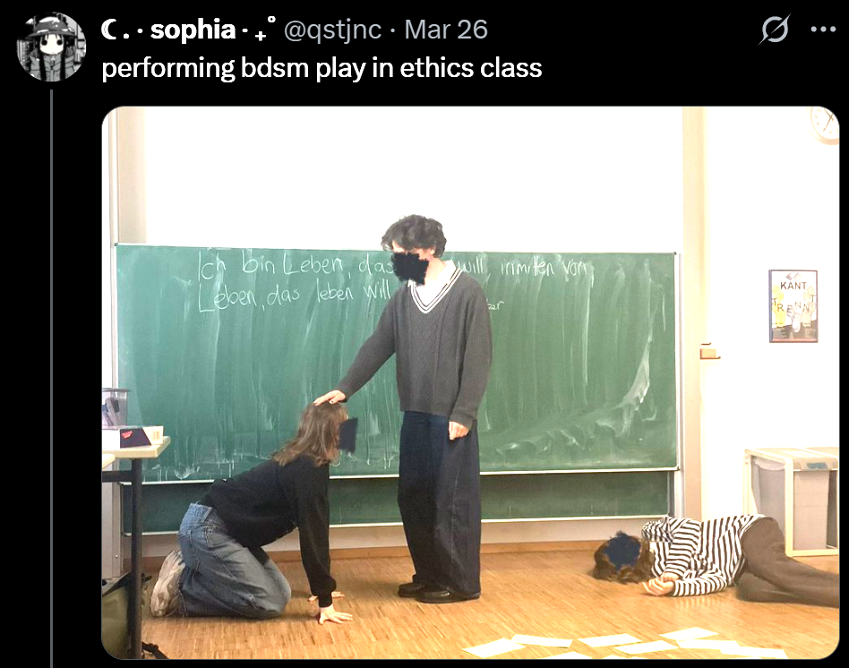 >>43371124id be down if i was single>>43371088maybe but that requires a dominant bottom and bottoms are women so you're still ending up with a dominant woman which is practically an oxymoron >>43371096i just want to suffer>>43371140im still at the party i cant read porn at the dinner table