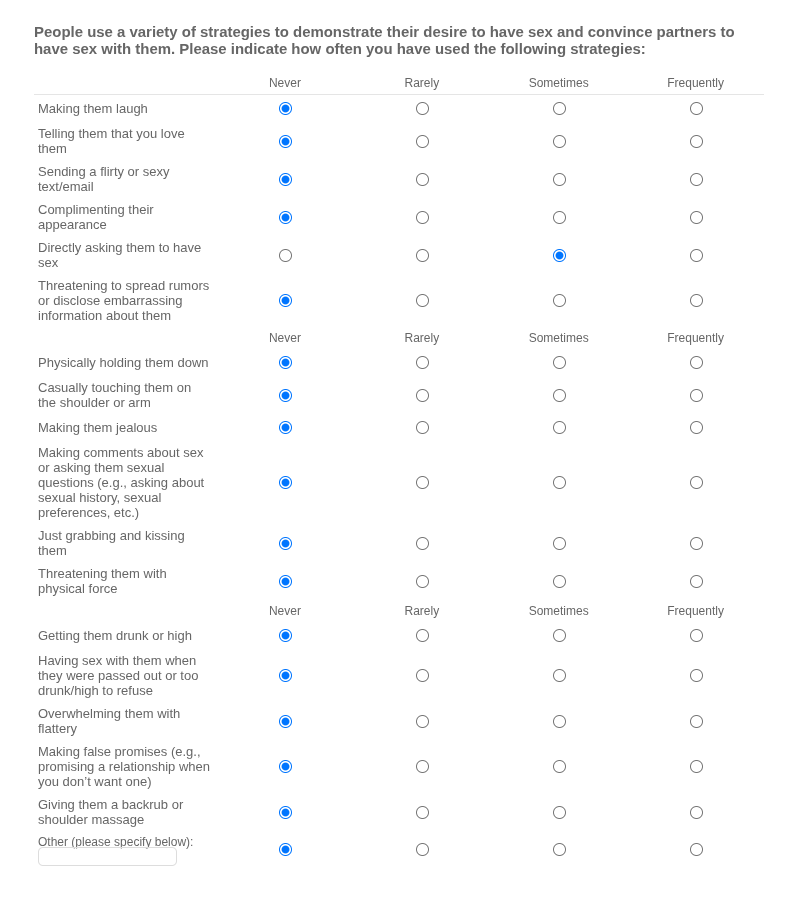 i can and did with my ex, but i never did so "to demonstrate...desire to have sex and convince partners to have sex with [me]". he and i are very affectively flat and prefer to use our words where possible