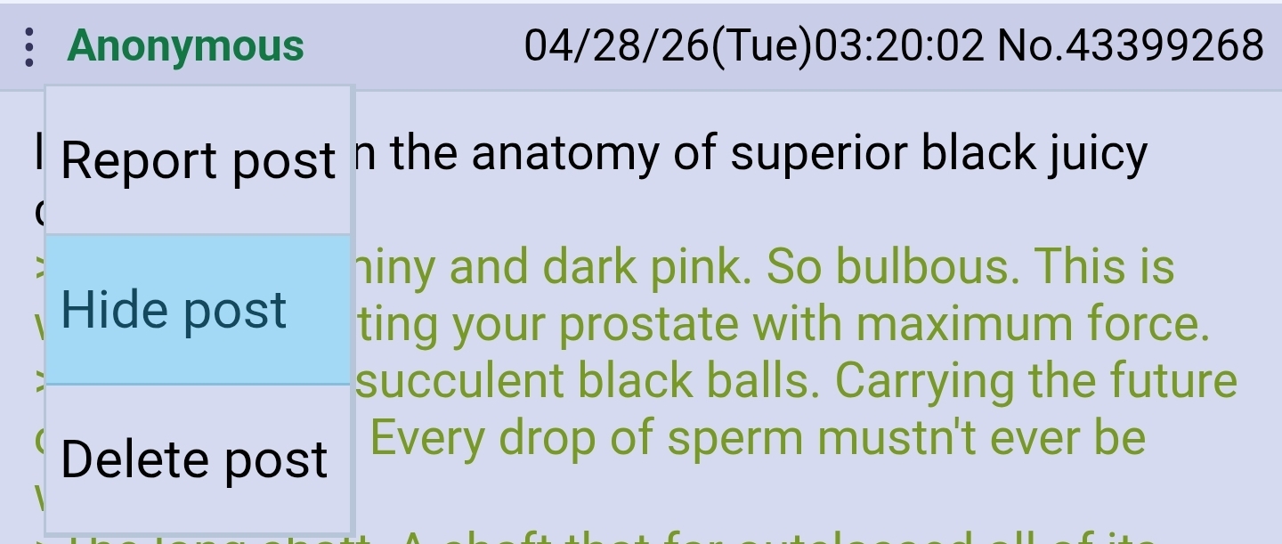 >>43397242>Because the tranny fad is overHRT should have stayed an extreme measure for extremely mentally ill trannies and not a transhumanist tool for maximizing ur social status