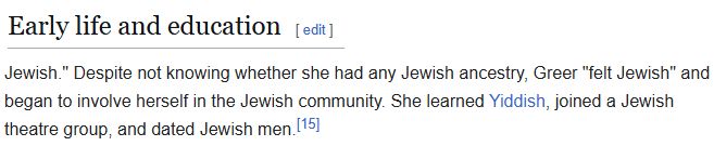 Btw. Germaine Greer wasn't certain whether or not she's jewish. But she wanted to be jewish, dated jewish and learned yiddish.