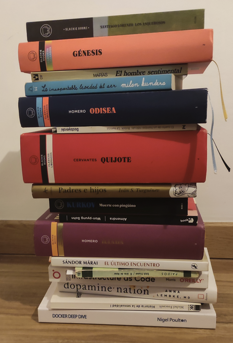 The book I have enjoyed the most this year has been The Unbearable Lightness of Being. In it, the author seeks to describe what it means for an individual to accept or reject the responsibilities that arise in their life.Specifically, it describes two lifestyles. On the one hand, there is a life that accepts responsibility. This life is more grounded, connected to the earth, and experiences life in its fullness, since many of its actions have an impact on the world—to the point that the weight of those actions can end up crushing the individual to the ground. On the other hand, a life of lightness enjoys its own existence by avoiding any responsibility in order to focus on oneself, even though this life ultimately feels a sense of unease when realizing that all its actions end up being insignificant in the face of the world.In summary, the idea that responsibilities make us more or less connected to the world around us has surprised me greatly.What book have you enjoyed the most this year?