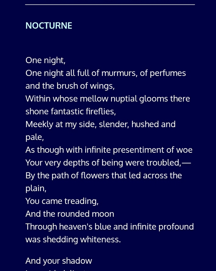 >>24971765>>24972099I think /lit/ would like Silva>All his life, José Asunción Silva was madly in love with a woman he could not have. His love for her is rumored to be the inspiration for several of his poems. He pined for her and wrote about his pain over and over again. In 1891, the love of his life passed away. The death is said to be the inspiration behind José Asunción Silva’s most famous poem, Nocturno:>[...]>And your shadow>Languid, delicate;>And my shadow,>Sketched by the white moonlight's ray>Upon the solemn sands>Of the path, were joined together,>As one together,>As one together,>As one together in a great single shadow.—Comment too long. Click here to view the full text.