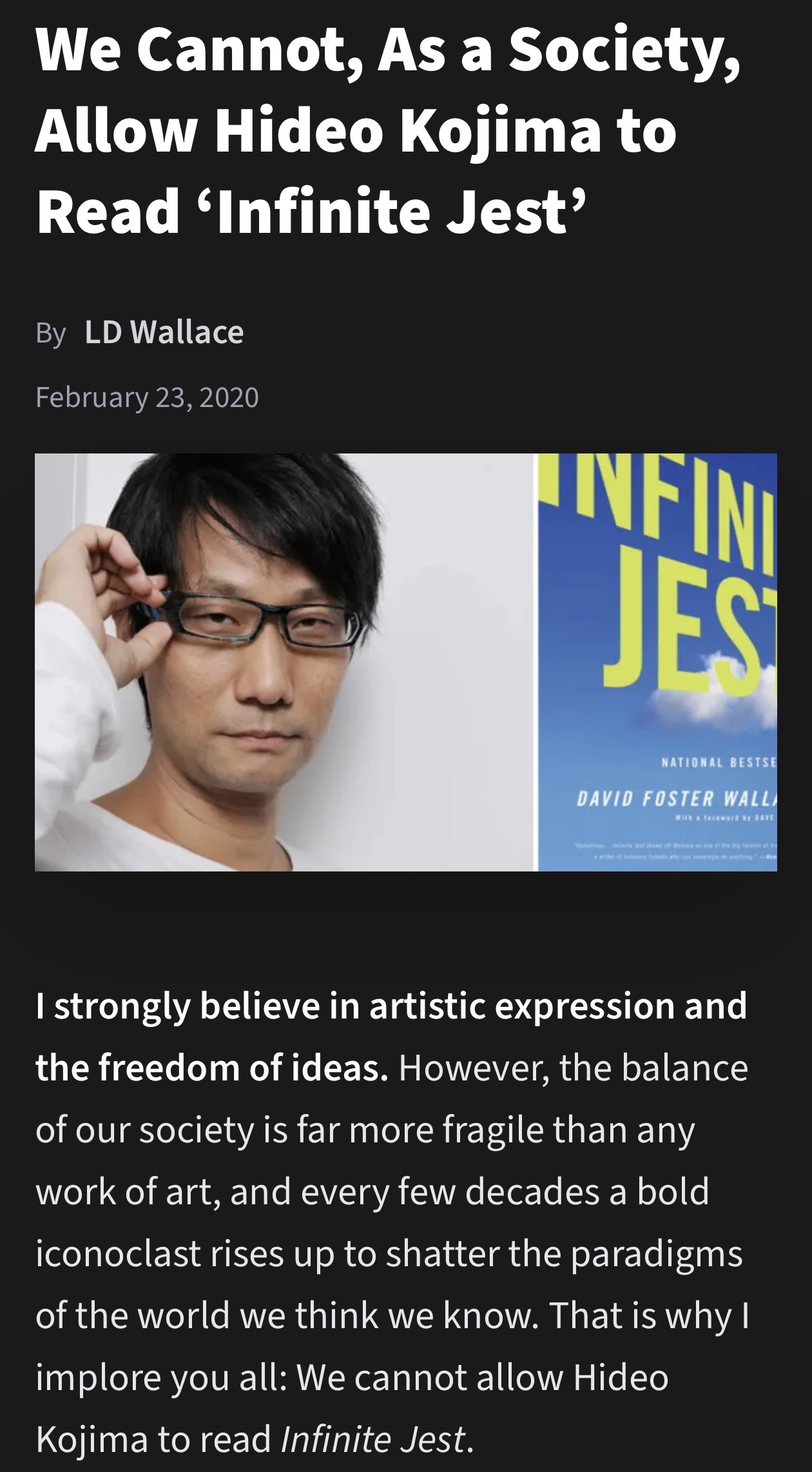 It’s nice to see some geniune DFW discussion here, all I’ve been seeing lately is endless bashing by people who haven’t read him.