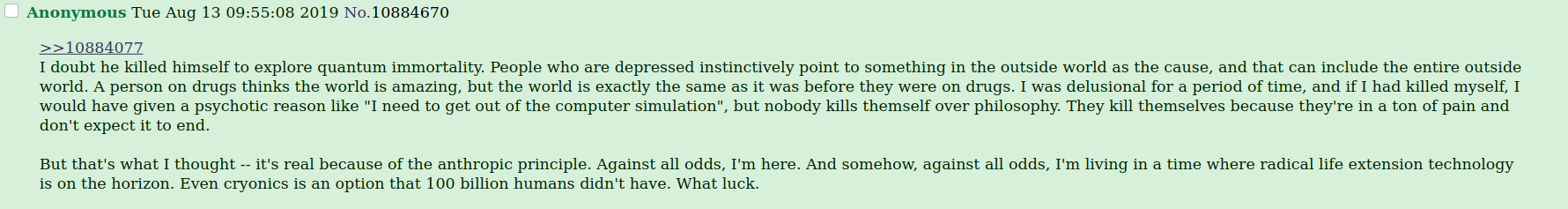 It's true. When you go to kill yourself, you are in a psychotic delusional state. You aren't yourself. It is very traumatic to know that you can enter into this state. That is what people who commit suicide are experiencing. They aren't themselves, in the way we know it.