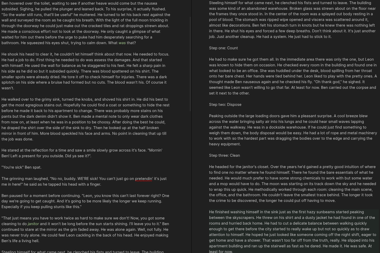 >>24822753Why not just use a non-cucked pastebin clone like cryptpad?Here is my second story ever I am working on. Judge me.