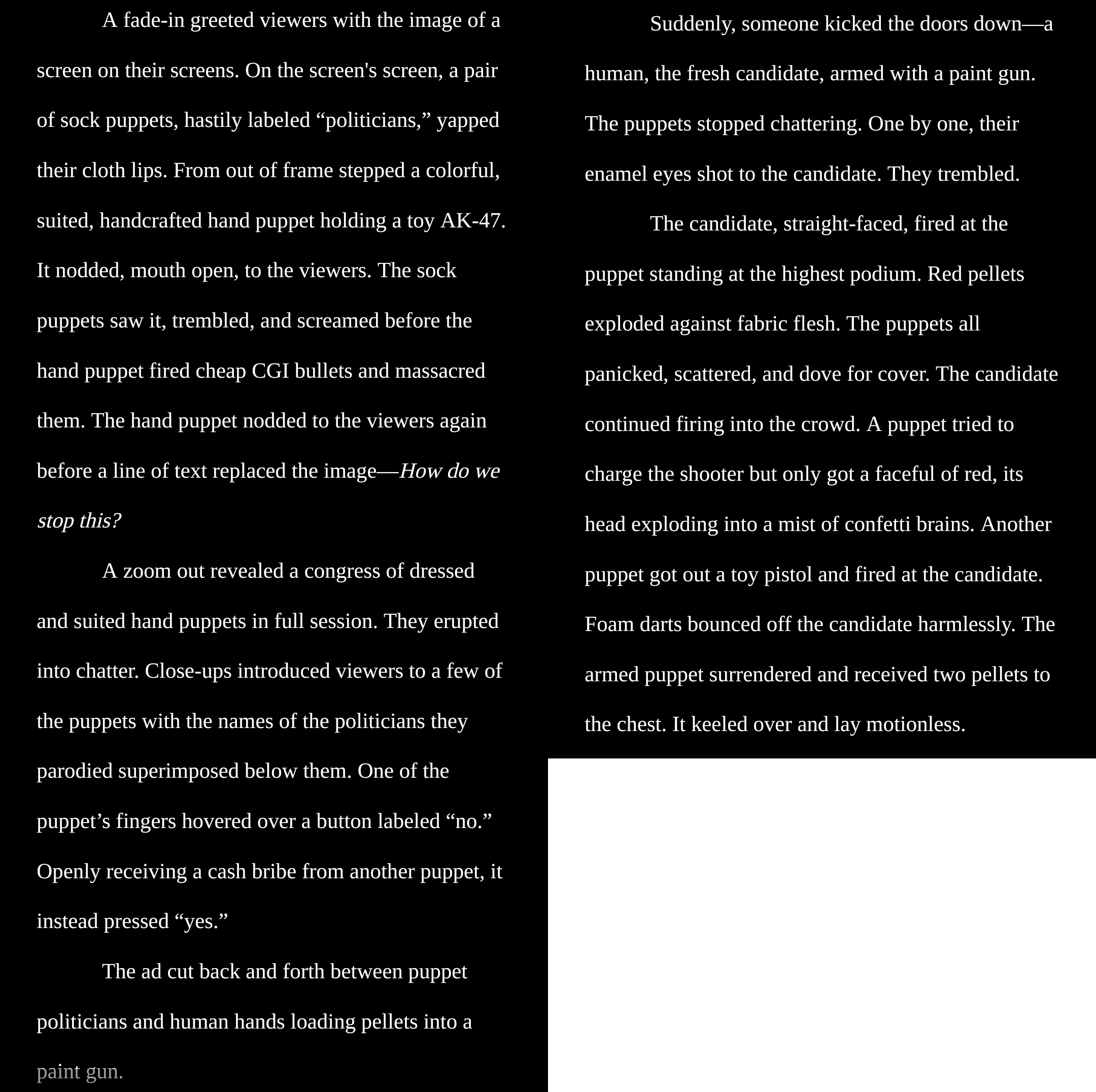>>24849449What a relief, the one I had felt embarrassingly deus ex machina ish because I didn't explain the twist as well as I could have.