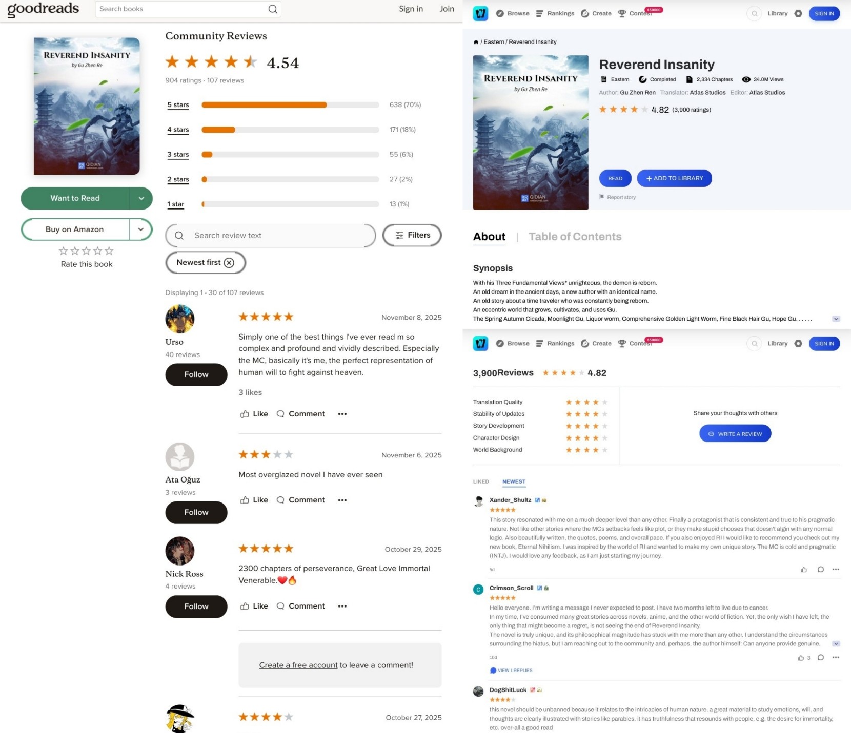 Just a friendly reminder.Pic related has 34 million views on Webnovel, 3900 reviews with average rating 4.82 out of 5, 904 ratings on goodreads (mind you goodreads is a lot more focused on traditionally published books), 4.54 out of 5 rating. Hundreds of comments overwhelmingly positive.While you sirs don't get even a single comment and when you do it's almost always negative.