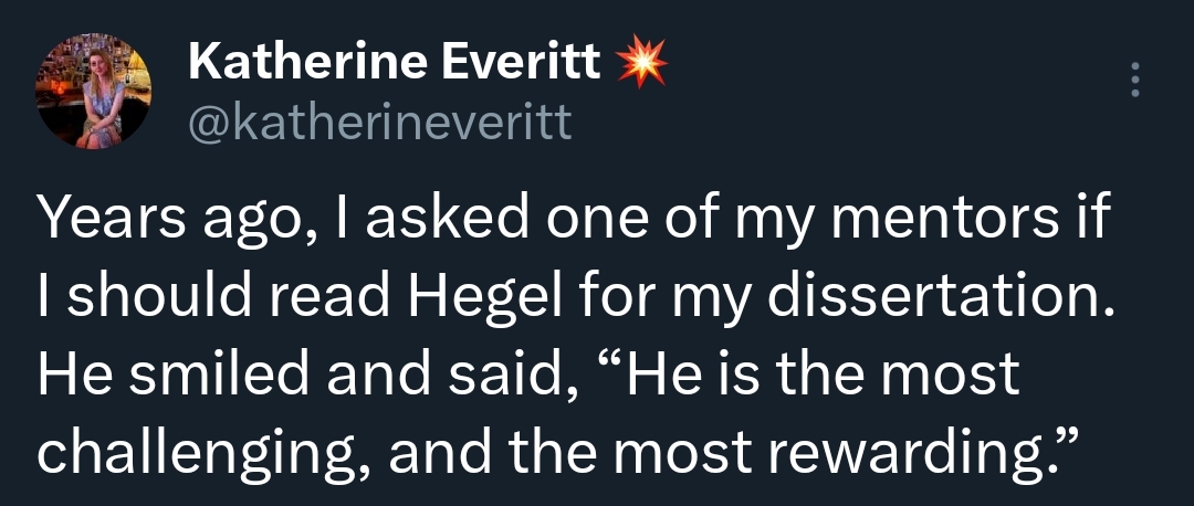 >>24954500they are enamored with the idea of being a "philosopher", or being "intellectual", so they read Hegel because they think that's what those kinds of people do