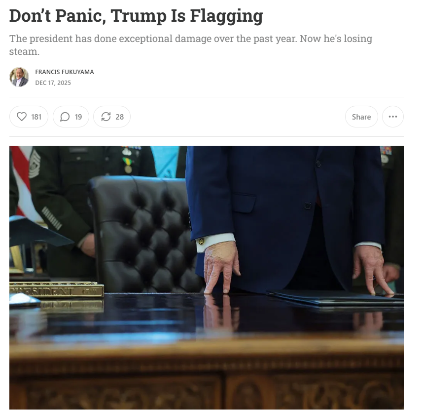 I actually think liberalism has been vindicated by the insanely incompetent display of the unliberal forces (putin, bolsonaro, Trump, Xi) all of them have been abject failures and their regimes are collapsing.I used to believe liberalism was done for during covid times. But since then it just seems like liberalism is the only system pragmatic enough to not shoot itself in the foot.The reason Russia, Hungary, Trumps US and China are failing is because they all are scoring own goals. They are fucking up themselves. Liberalism as a philosophy and political philosophy protects against self-owns by basically locking the nation into a bureaucratic gridlock.The irony is that the arguments against liberalism (bureaucracy, managerial class, political gridlock) are the precise reasons why it will survive and why it is superior to the other ideologies. Self-owns are the number one reasons regimes, governments and states fail throughout history.Liberalism essentially makes the government so weak that it's impossible for them to make a self-own, thus outcompeting systems with state interference that just ends up fucking shit up for themselves like Russia, Hungary, China and Trump US.Francis fukuyama doesn't realize this, but his "end of history" book was completely correct and essentially proven over the last 5 years time.