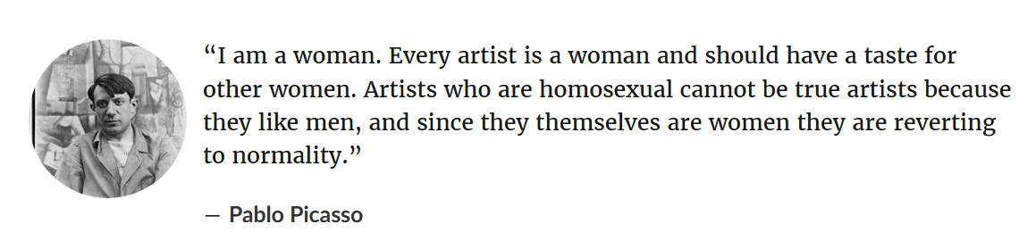 >>25006353creativity is fundamentally feminine, as the greeks understood. as far as it being exploration - i think you’re wrong about that; it might be ‘finding’ but it’s rarely ‘exploring’ (if it’s any good). and most of it is taking in, which is feminine.