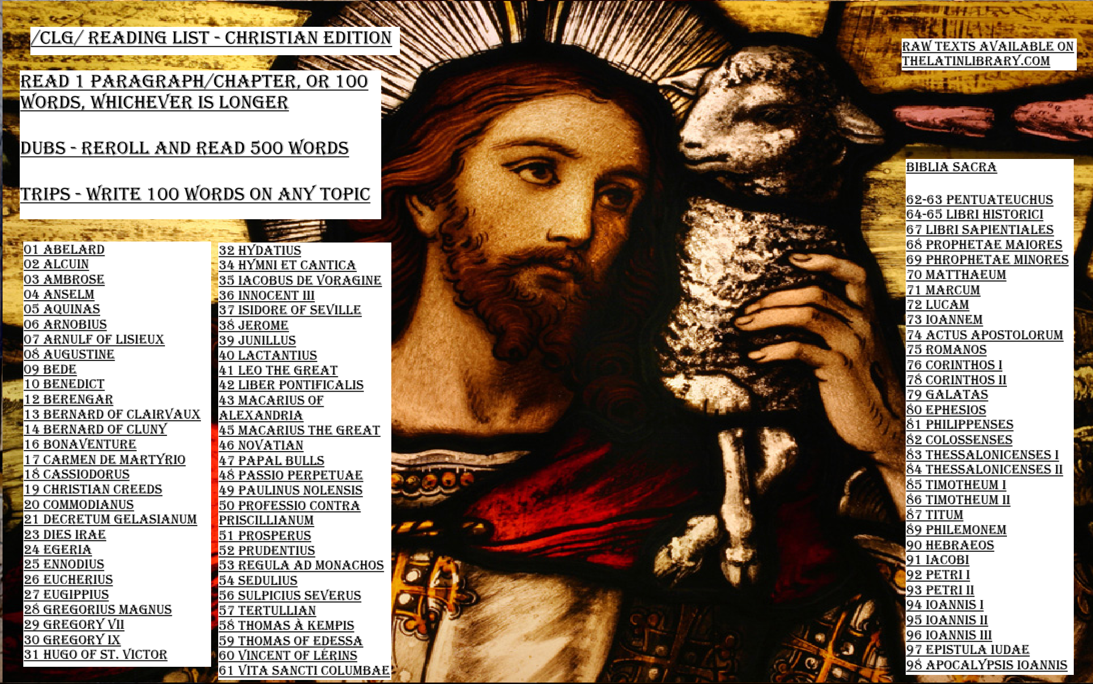 People will with a straight face tell you to read 5000 pages of some redditor’s readers as “comprehensible input” written in a stilted pastiche of learner’s classical latin but to not read anything written by a Christian even though large chunks of it might be comprehensible within months for an English speaker, and it actually gets you into the habit of dealing with the challenges of authentic texts earlier.