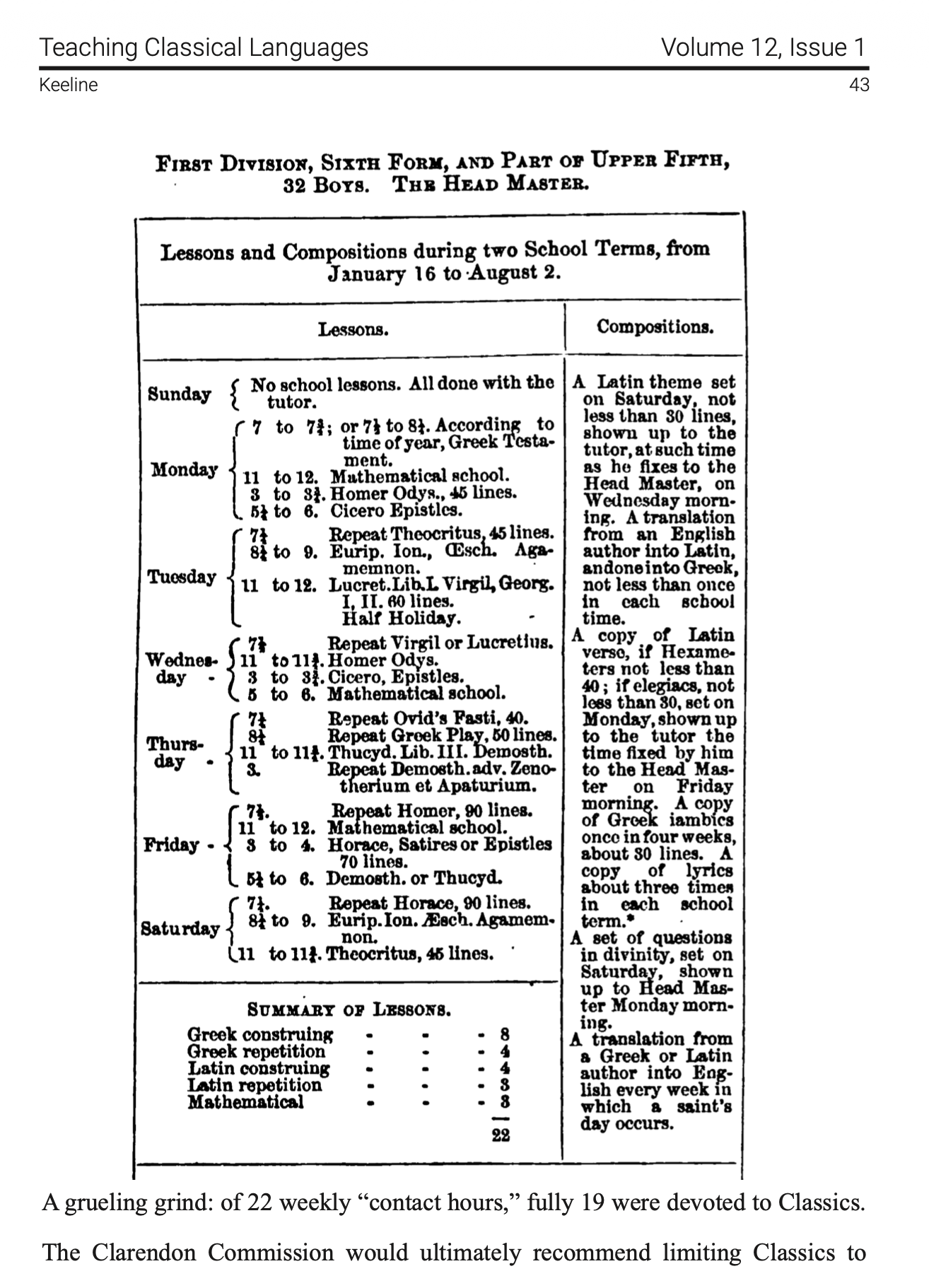 This paper is interesting (relevant to the discussion ITT) because it givessome concrete details about how (elite) 19th century British students studied classics in school. This table shows these high schoolers (in US terms) spent about 19 classroom hours a week on classics, and then I suppose they were supposed to spend a similar amount of time outside of class with private tutors or studying independently, so they treated it like a full time job.https://tcl.camws.org/sites/default/files/TCL%2012.1%20Keeline%20Final%20Draft.pdfPoint being, if you're not treating Latin or Greek like a full time job over many years, don't grumble if you're not as good as a British schoolboy.